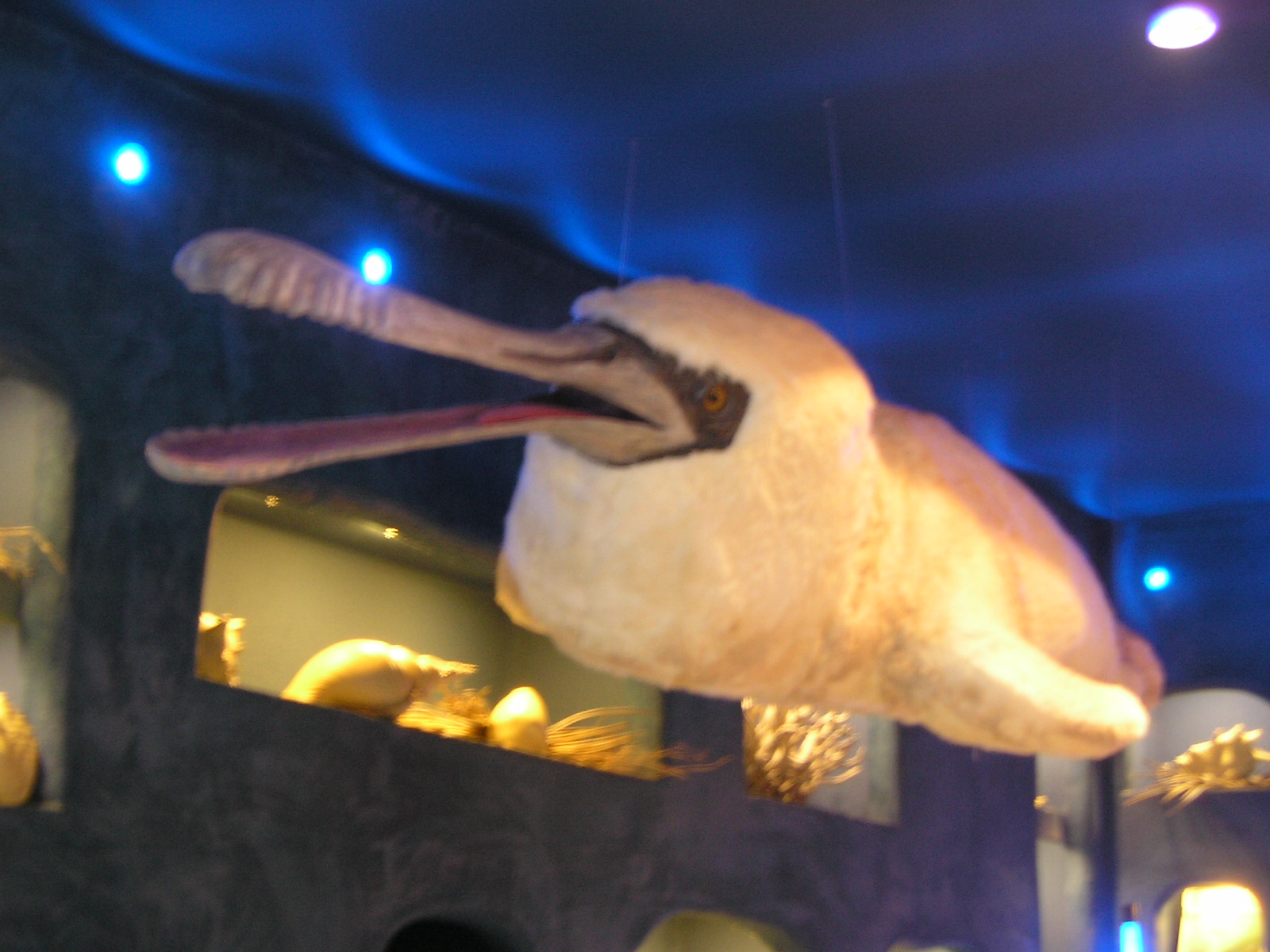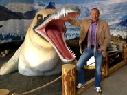 The gannetwhale was one of several marine animals from The Future Is Wild to appear in a 2010–2011 exhibition at Australia's Sydney Aquarium. The "gannetwhale feature" included exclusive footage, such as a depiction of a gannet morphing into a gannetwhale.[8] A gannetwhale model, created by Alain Dalis, was also on display at the 2008–2012 Les Animaux du Futur attraction at France's Futuroscope. In the original 2008 iteration of the attraction, it was displayed in the pre-show room, but following renovations in 2009, it was moved to the H20 shop elsewhere in the Futuroscope. In Germany, a different gannetwhale model appeared in a The Future Is Wild exhibition at Dinopark Münchehagen from 2012–2016, and at Dinosaurierpark Teufelsschlucht since 2016. An identical model was on display at the Dobergmuseum in Bünde from 2013–2014.
